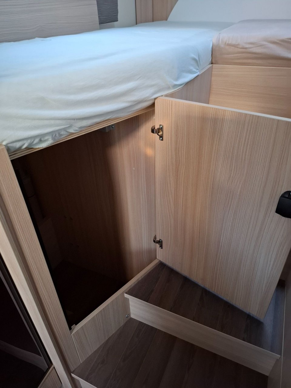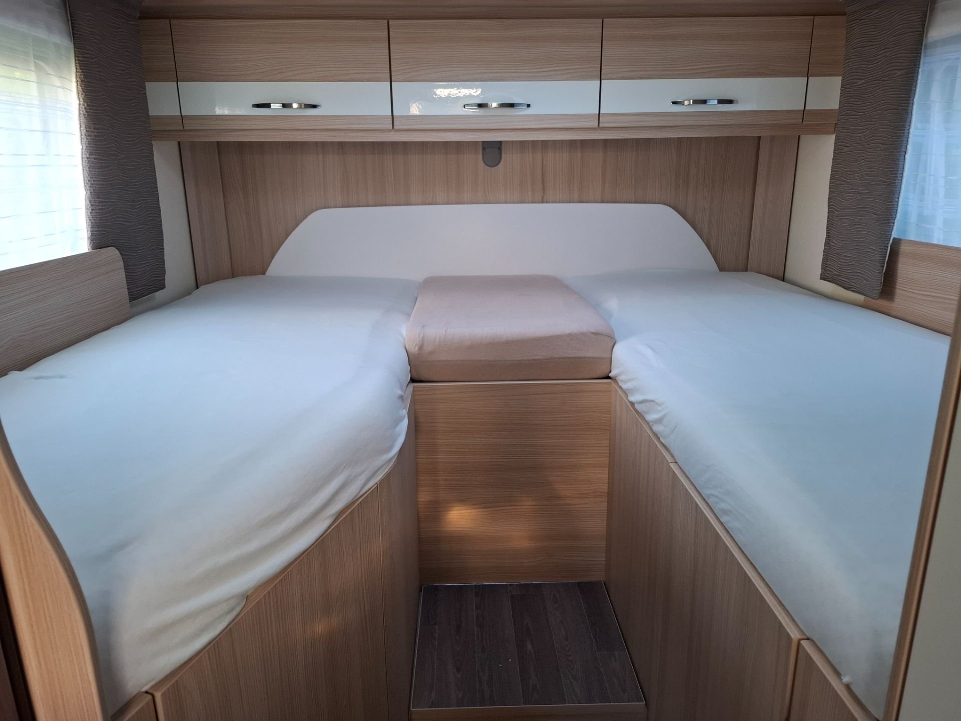 Das Mobil verfügt über 4 Sitzplätze mit Gurt und 2 Einzelbetten mit Hygiene-Matratzenschonern und Spannbettlaken. Kopfkissen müssen aus hygienischen Gründen mitgebracht werden. Deckenschlafsäcke können gegen einen Aufpreis von 10€ pro Bett und Reise dazugebucht werden. Das Fahrzeug ist voll ausgestattet und durchdacht eingerichtet. Über eine elektrische Trittstufe gelangen Sie bequem in den Innenraum. Unser Reisemobil verfügt über ein großes Schwenkbad, hierbei entsteht eine Dusche in dem man die Wand mit Waschbecken nach rechts über das Toilettenbecken schwenkt. Die Küche ist perfekt ausgestattet mit einem 3-Flammen-Gaskocher und Piezozündung. Ausreichend Geschirr und Kochzubehör ist für 4 Personen vorhanden und lässt sicher keine Wünsche offen, da wir unser Mobil auch selbst nutzen. Zur Vervollständigung des Freizeitvergnügens ist ein TV mit automatischer Sat-Anlage, Radio mit Akku, DAB, FM, Bluetooth sowie USB vorhanden. Eine Spielesammlung und hilfreiche Bücher ergänzen die Freizeitmöglichkeiten an Bord. Im Außenbereich haben wir eine große Markise unter der Sie sich mit den ebenfalls enthaltenen 2 Campingstühlen inklusive Fußhocker und Tisch aufhalten können. Sie können das Mobil mit einem PKW-Führerschein fahren, da es eine Gesamtmasse von 3,5 Tonnen nicht überschreitet. Sie können eigenes Gepäck bis 80kg zuladen. Da dauerhaft ein Fahrradträger für 2 E-Bikes montiert ist können auf Wunsch gegen Aufpreis von 25€ pro Fahrrad und Reise bis zu 2 E-Bikes dazu gebucht werden. Alle notwendigen Utensilien, wie CEE-Kabeltrommel 25m mit Adapter für Schukosteckdose, Schlauchtrommel 12m, Werkzeugkasten, Akkuschrauber, Set Unterfahrkeile, Heringe zur Befestigung der Markise, 2x 11kg-Gasflaschen mit automatischer Umschaltung und Crashsensor sowie Sanitärzubehör für die Kassettentoilette sind im Preis inbegriffen. Ein Gaswarner für Propoan-, CO²- und Narkosegas befindet sich bei den Betten. Ihre eigenen Räder können Sie auch in der großen Heckgarage unterbringen. Sie erhalten bei Abholung eine intensive Einweisung und können Ihren PKW auf dem Stellplatz des Wohnmobils kostenlos abstellen. Für Flugzeug- oder Bahnanreisende Gäste bieten wir einen Abholservice vom Bahnhof oder Flughafen in Erfurt an. Auf Wunsch übernehmen wir für Sie die Endreinigung für eine Pauschale von 100,00€.