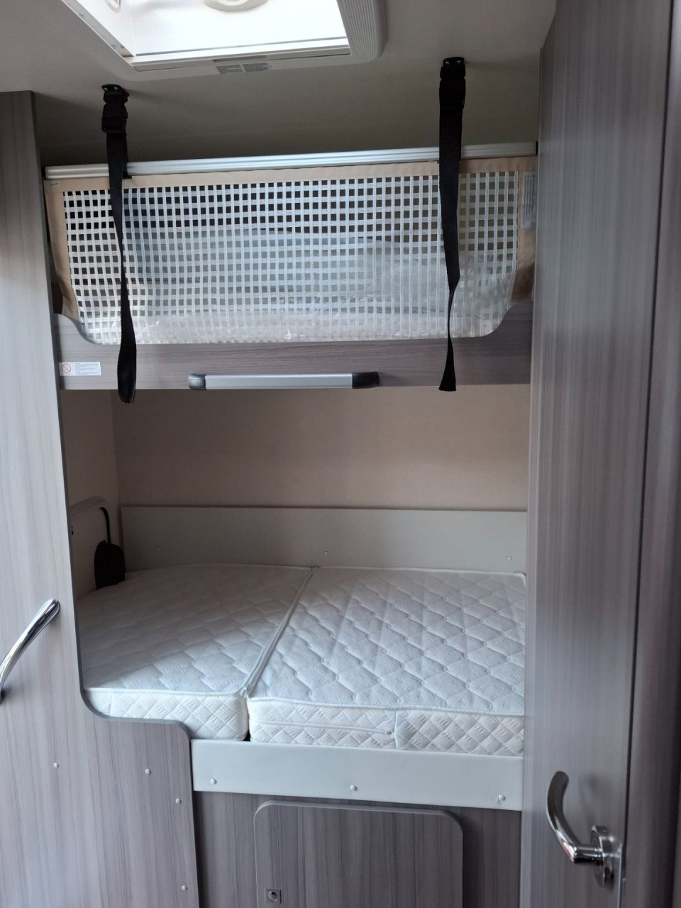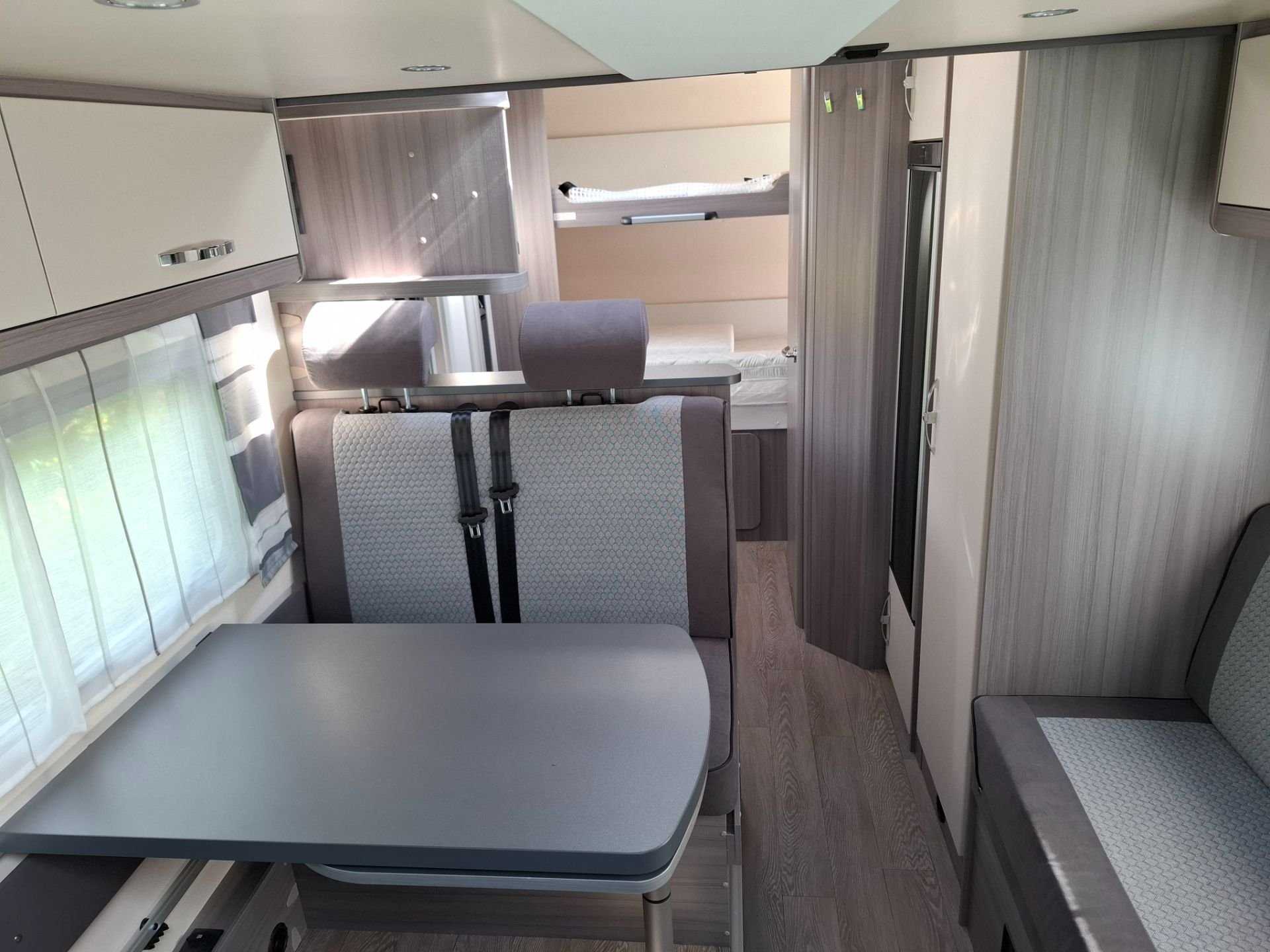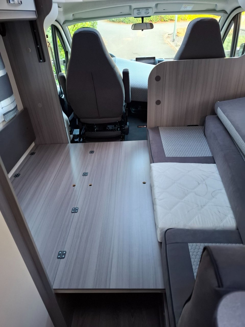 Das Mobil verfügt über 4 Sitzplätze mit Gurt und Schafmöglichkeiten für bis zu 6 Personen Diese verteilen sich auf 2 große Einzel-Stockbetten in Heck, 2 auf das Hubbett und 2 auf die umgebaute Sitzgruppe. Alle Betten werden mit Hygiene-Matratzenschonern und Spannbettlaken ausgestattet. Kopfkissen müssen aus hygienischen Gründen mitgebracht werden. Decken oder Schlafsäcke können gegen einen Aufpreis von 10€ pro Bett und Reise dazu gebucht werden. Das Fahrzeug ist voll ausgestattet und durchdacht eingerichtet. Über eine elektrische Trittstufe gelangen Sie bequem in den Innenraum. Unser Reisemobil verfügt über ein großes Bad mit abtrennbarer Dusche. Die Küche ist perfekt ausgestattet mit einem 3-Flammen-Gaskocher und Piezozündung. Ausreichend Geschirr und Kochzubehör ist für 6 Personen ist vorhanden und lässt sicher keine Wünsche offen, da wir unser Mobil auch selbst nutzen. Zur Vervollständigung des Freizeitvergnügens ist ein TV mit CAMPERNET (TV-Kombination aus LTE-/WLAN-Router mit Dual-Sim und leistungsfähiger Multiband Dachantenne für mobiles Streaming und WiFi im Fahrzeugumfeld, Smart-TV inkl. Tuner / Receiver und Fernsehauszug) , Radio mit Akku, DAB, FM, Bluetooth sowie USB vorhanden. Eine Spielesammlung und hilfreiche Bücher ergänzen die Freizeitmöglichkeiten an Bord. Im Außenbereich haben wir eine große Markise unter der Sie sich mit den ebenfalls enthaltenen 4 Campingstühlen und Tisch aufhalten können. Bei Bedarf können noch 2 weitere Campingstühle ohne Mehrpreis hinzugebucht werden. Sie können das Mobil mit einem PKW-Führerschein fahren, da es eine Gesamtmasse von 3,5 Tonnen nicht überschreitet. Sie können eigenes Gepäck bis 80kg zuladen. Alle notwendigen Utensilien, wie CEE-Kabeltrommel 25m mit Adapter für Schuko Steckdose, Schlauchtrommel 12m, Werkzeugkasten, Akkuschrauber, Set Unterfahrkeile, Heringe zur Befestigung der Markise, 2x 11kg-Gasflaschen mit automatischer Umschaltung und Crashsensor sowie Sanitärzubehör für die Kassettentoilette sind im Preis inbegriffen. Ein Gaswarner für Propan-, CO²- und Narkosegas befindet sich bei den Betten. Ihre eigenen Räder können Sie auch während der Fahrt in der großen Heckgarage unter dem zusammengeklappten unteren Stockbett unterbringen. Sie erhalten bei Abholung eine intensive Einweisung und können Ihren PKW auf dem Stellplatz des Wohnmobils kostenlos abstellen. Für Flugzeug- oder Bahnanreisende Gäste bieten wir einen Abholservice vom Bahnhof oder Flughafen in Erfurt an. Auf Wunsch übernehmen wir für Sie die Endreinigung für eine Pauschale von 100,00€.